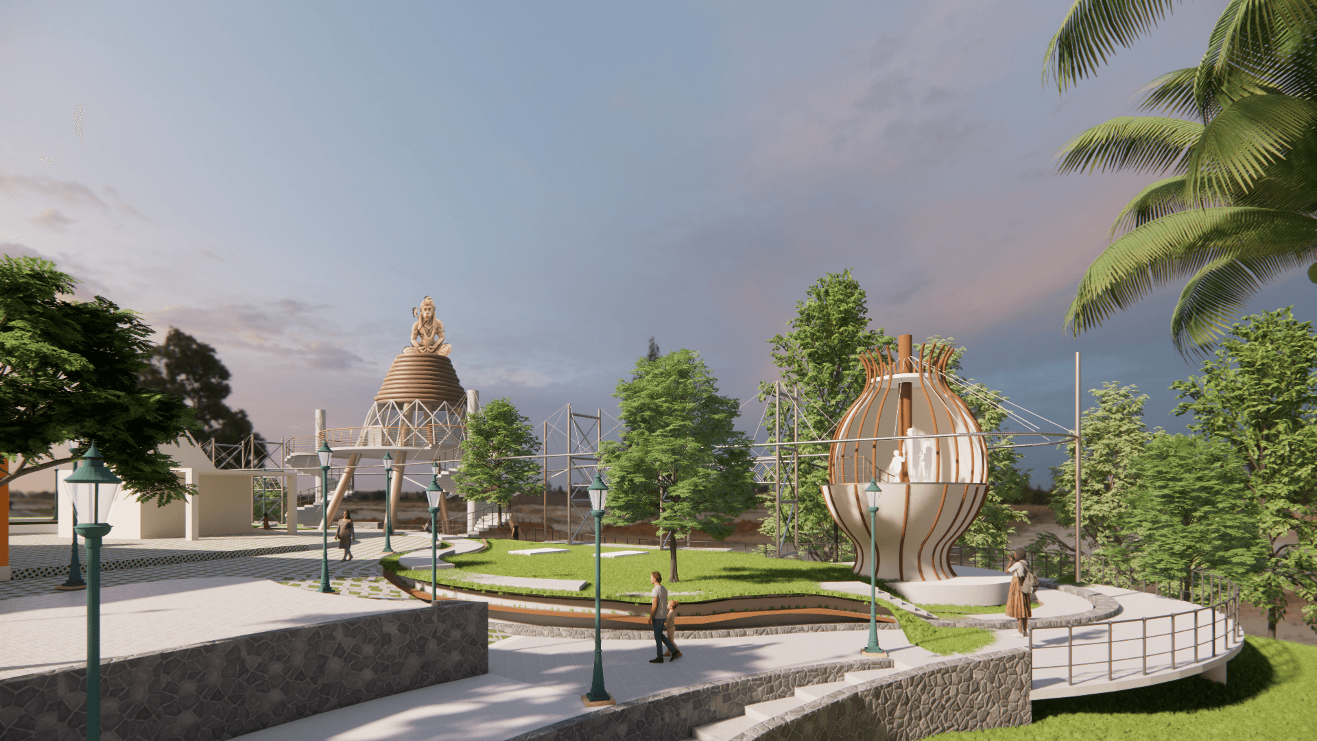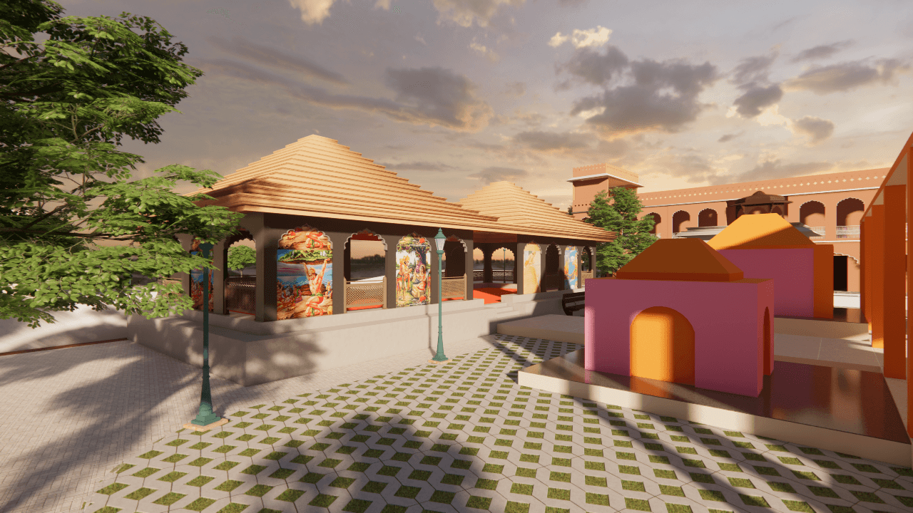 The Hanuman Tekdi has been conceptualized and designed as a spiritually significant hilltop landmark. The core concept envisions a majestic Hanuman idol seated on his coiled tail, symbolizing strength, devotion, and unwavering faith.